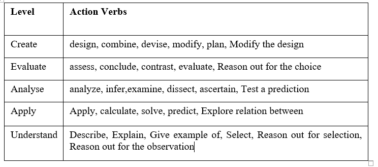 How to formulate learning objectives at different cognitive levels as per Revised Blooms’ Taxonomy?