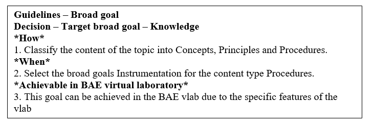 In this step you will be making a decision regarding the virtual laboratory to be used for achieving the different learning objectives and the features that the virtual lab must possess in order to achieve the learning objectives.
