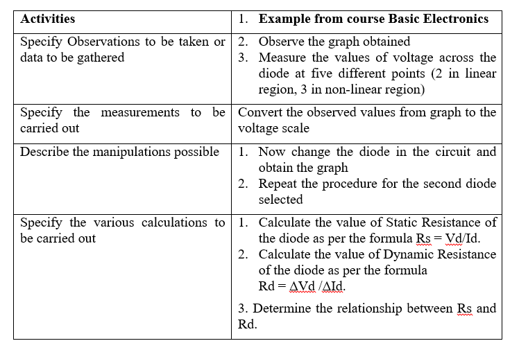 It is a set of ordered steps, sequenced to solve a problem or accomplish a goal. For the Basic and Advanced Electronics laboratory environment the examples of procedures are - A sequence of steps carried out to perform an experiment, A sequence of steps carried out to analyse a circuit etc.